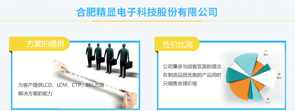 ?合肥精顯電子科技股份有限公司成立于2012年,由液晶行業(yè)知名企業(yè)廈門精顯電子有限公司投資建設(shè),是一家研發(fā)、生產(chǎn)、銷售高品質(zhì)液晶屏(LCD)、液晶顯示模塊(LCM)、背光(LED)、電容式觸摸屏(CTP)等節(jié)能環(huán)保產(chǎn)品并能為顧客提供解決方案的高新科技企業(yè)。 ?公司占地55畝,擁有建筑面積超過20000平米和潔凈廠房5400平米。 ?公司擁有一個超過15年以上LCD行業(yè)運營制造經(jīng)驗的團(tuán)隊。 ?公司獲得研發(fā)專利20余項。 ?公司通過C-TPAT認(rèn)證,ISO9001:2008認(rèn)證,產(chǎn)品通過了ROHS、REACH。 ?我們產(chǎn)品廣泛應(yīng)用于智能儀表(水表,電表,氣表)、家電、儀器儀表、計量器械、文教 器具、UPS電源、智能手機機、平板電腦等電子產(chǎn)品的顯示和控制。目前我們已樹立了良好的品牌形象,并與眾多公司(如GE, Ja...更多>